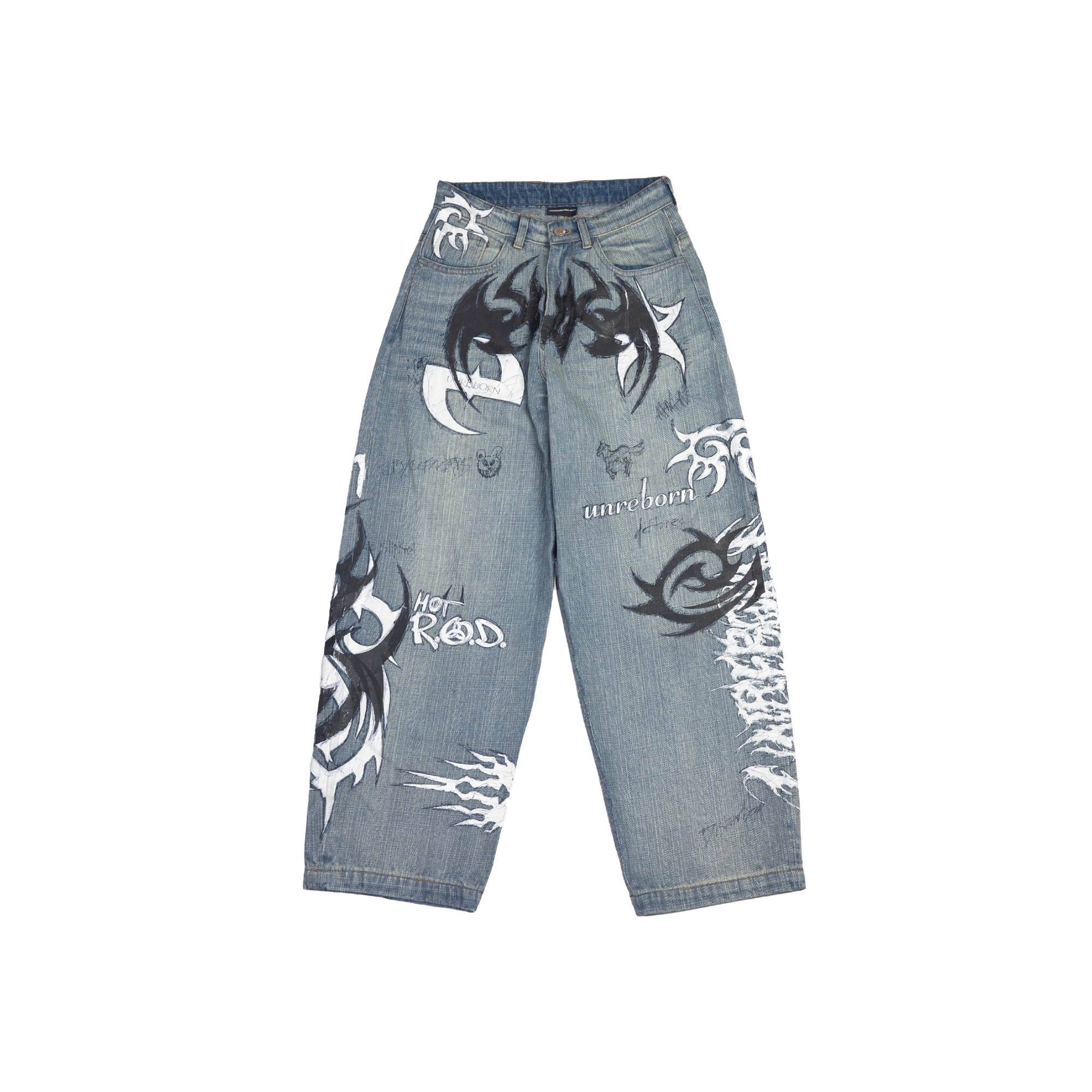 Ripped Knees Jeans On Jeans-Bluish - RTW