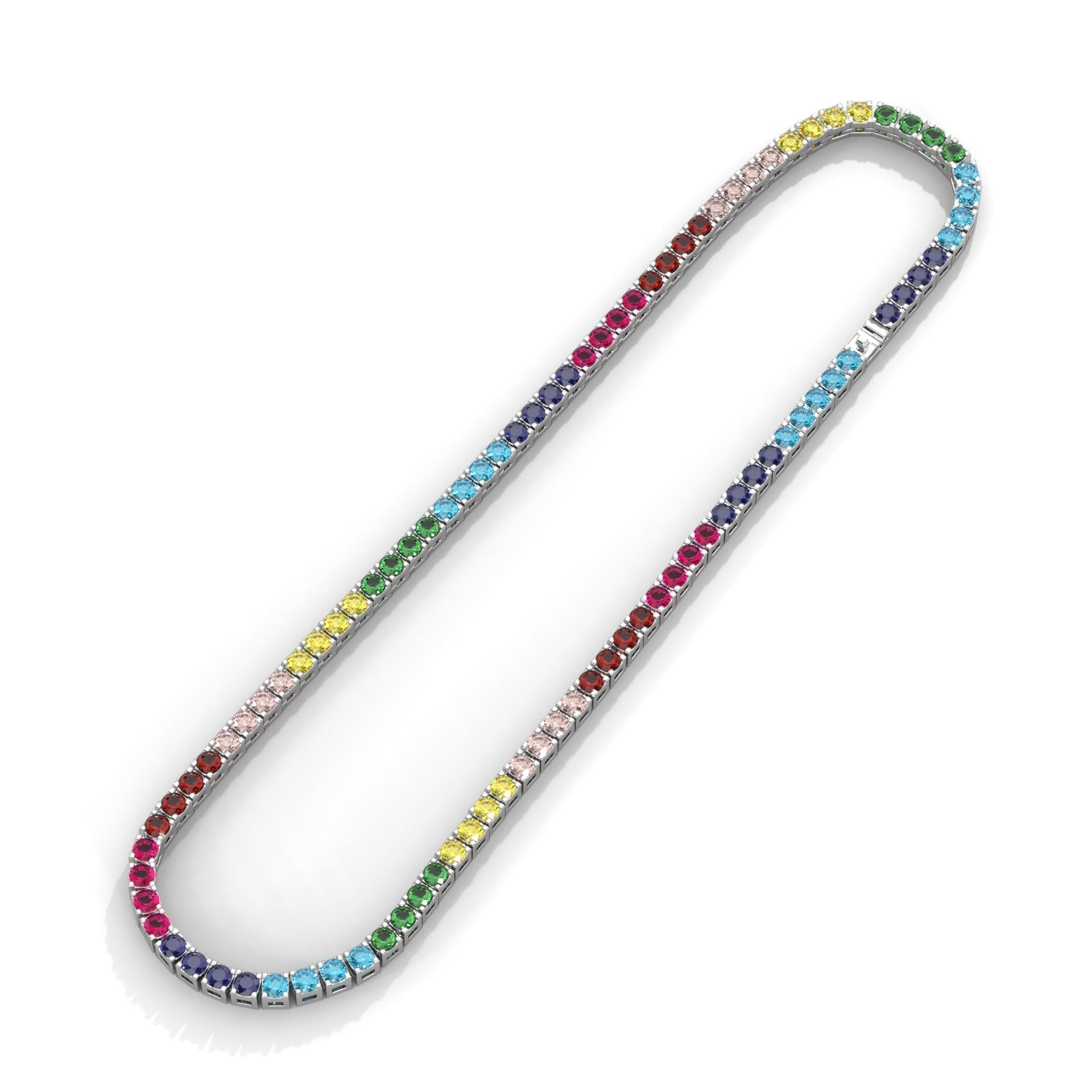 This 3mm tennis necklace is crafted from high-quality sterling silver and elegantly plated with a lustrous gold finish. Each link is meticulously set with dazzling, round-cut cubic zirconia stones, offering a brilliant shine that catches the light from every angle. Its sleek 3mm width provides a sophisticated yet subtle statement, making it a versatile accessory for any occasion. The necklace is secured with a sturdy clasp, ensuring both style and durability.