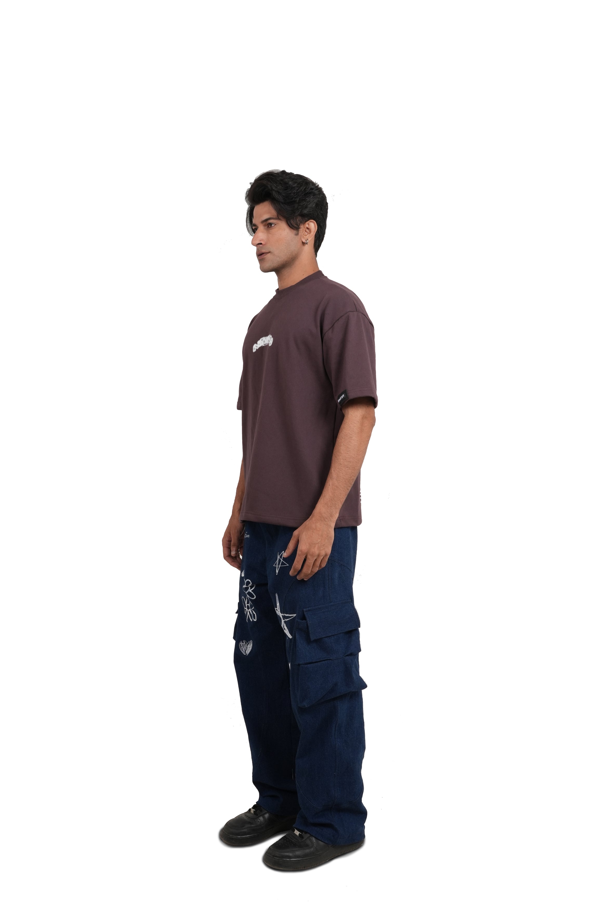 Oversized fit t-shirt with ribbed crewneck collar. ART IS ODD- scribbled graphic to the front & back finished in puff printing. Premium Fabric with soft feel crafted from a blend of cotton and polyester.