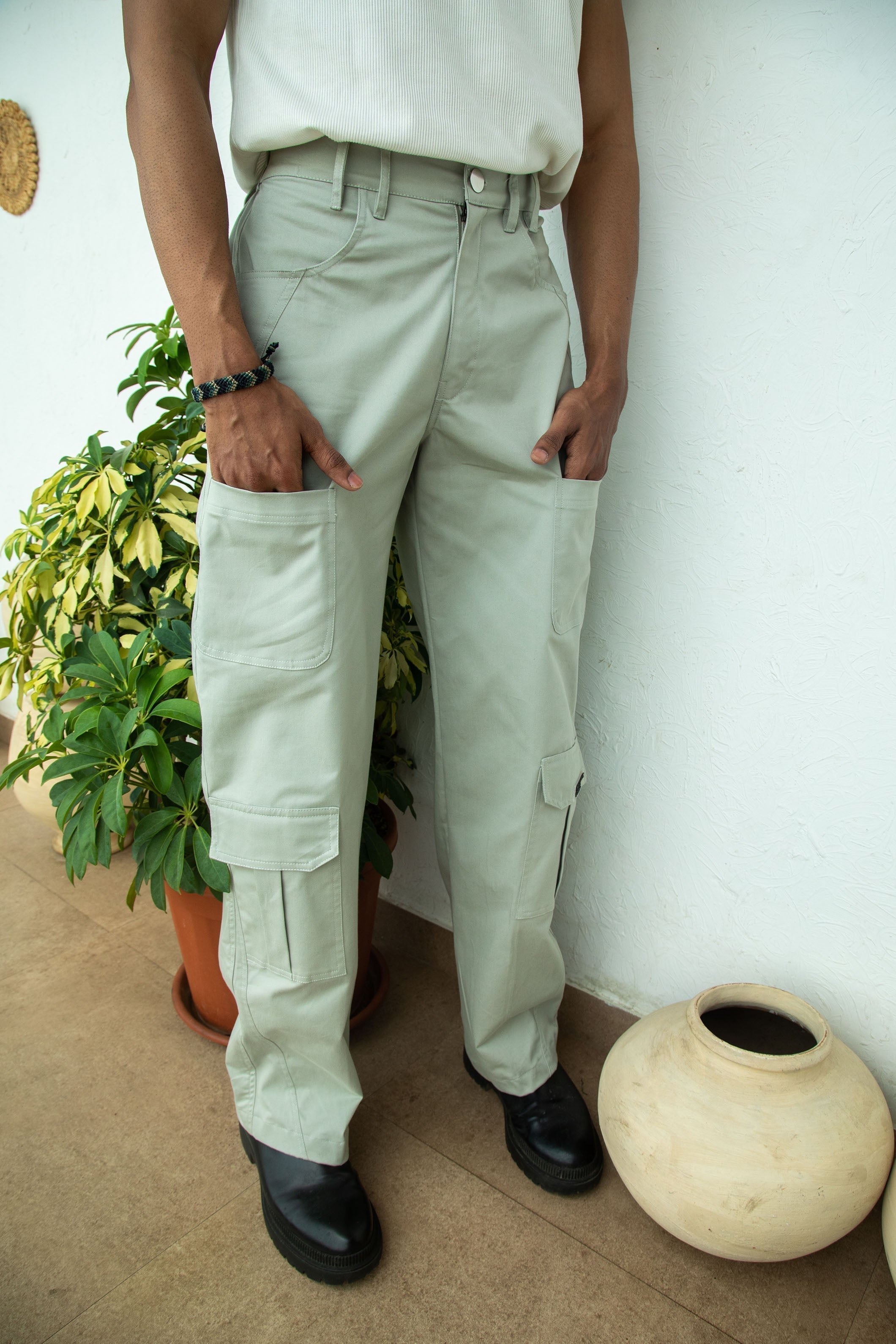 Introducing our new addition to our Cargo Pants collection. Combining functionality with unique styles, these cargos are designed to meet the demands of modern street fashion. Crafted with 100% twill cotton fabric, our cargos are the perfect trifecta of softness, durablility and breathability, making them your go-to for any day and any occasion. The elastic waistband ensures a snug yet comfortable fit, so you can move freely and adapt to any situation. Our pants feature multiple pockets- side, back and thigh pockets providing ample space to keep your necessities safe. Attention to detail, the hem finish is crafted to perfection, ensuring that the pants maintain their shape and structure throughout.