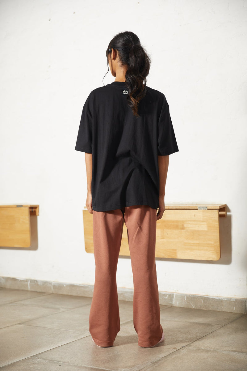 ‘KGRM Alien Heart’ cotton track pants in brown colour.