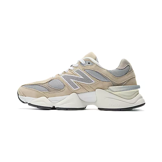 The New Balance 9060 Incense Raincloud Arid Stone fuses muted natural tones with the futuristic design language of the 9060 silhouette. The upper combines breathable mesh in a soft raincloud grey with layered suede overlays in incense and arid stone shades, creating a textured, tonal palette that feels both modern and organic. Reflective details accent the “N” logo and trim, adding subtle highlights that catch light against the subdued backdrop. The sculpted midsole, influenced by the 99X series heritage, is exaggerated with flowing curves and pod-like sections, housing ABZORB and SBS cushioning for plush comfort and responsive support. A durable rubber outsole with segmented tread patterns ensures traction and stability, completing a sneaker that balances earthy sophistication with progressive style.