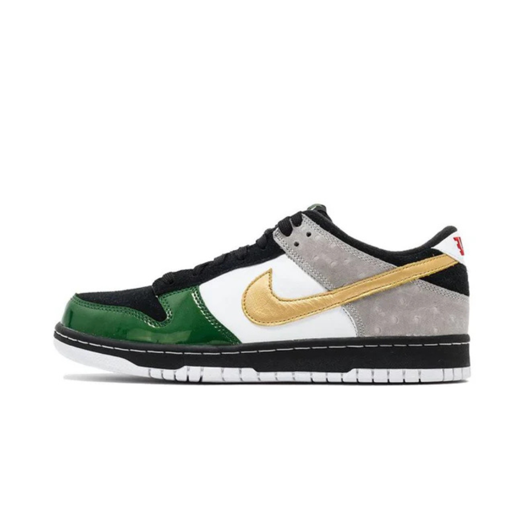 The Nike Dunk Low CO.JP mita sneakers OnkoChishin is a Japan-exclusive release that blends heritage storytelling with premium craftsmanship, created in collaboration with Tokyo-based mita sneakers. Its name, “Onko Chishin,” translates to “develop new ideas based on past knowledge,” a theme reflected in the design’s fusion of retro and modern elements. The upper features a mix of smooth leather and textured overlays in deep navy and muted brown tones, accented by a rich green Swoosh that adds a pop of contrast. Subtle co-branding appears on the insole and lace tips, while unique cross-stitch detailing on the heel tab nods to traditional Japanese craftsmanship. The padded collar and perforated toe box maintain the Dunk’s classic comfort, while a crisp white midsole atop a dark rubber outsole completes the look. This edition captures the essence of CO.JP exclusives—rooted in culture, executed with precision, and made for collectors who value both story and style.