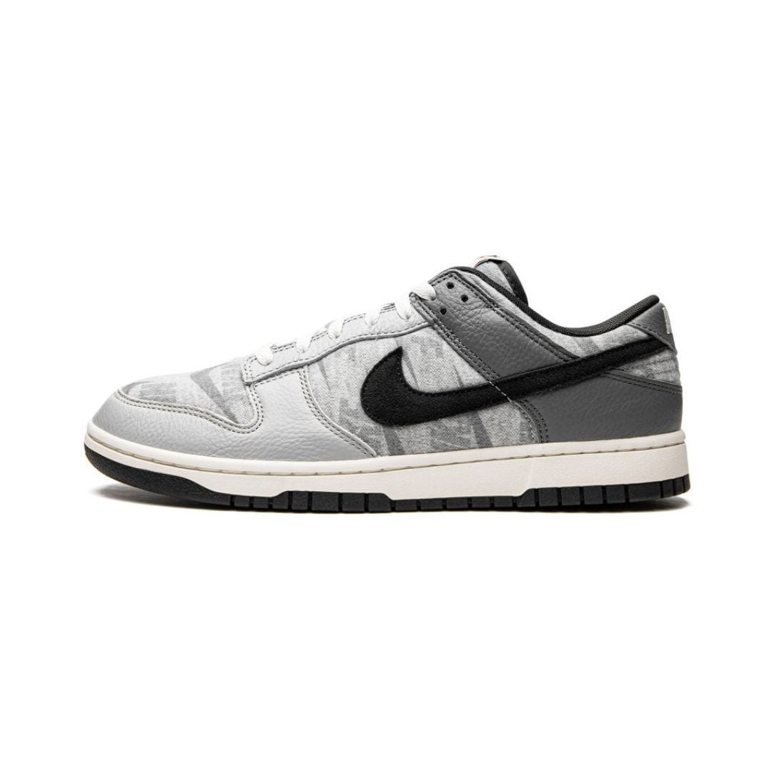 The Nike Dunk Low SE Copy Paste brings a bold graphic-driven twist to the classic Dunk by layering oversized branding and textural contrasts onto its familiar silhouette. The upper combines smooth leather and durable textile in shades of grey and off-white, creating a neutral backdrop that highlights the standout details. A large, printed Nike logo stretches across the lateral side panel, partially overlapping the traditional Swoosh for a deconstructed, collage-like effect, while the medial side keeps a cleaner look with a standard Swoosh. Subtle suede overlays add depth, and the padded tongue and collar ensure the usual Dunk comfort. A crisp white midsole pairs with a light grey outsole to balance the design, reinforcing its versatile wearability. Playful yet modern, this edition captures the “copy and paste” theme by reimagining brand identity in an exaggerated, street-ready form.